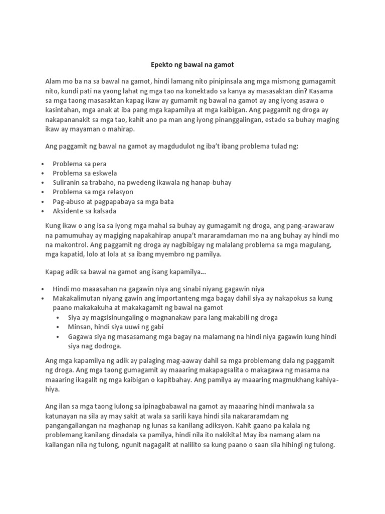 Epekto Ng Bawal Na Gamot Sa Pamilya Pdf