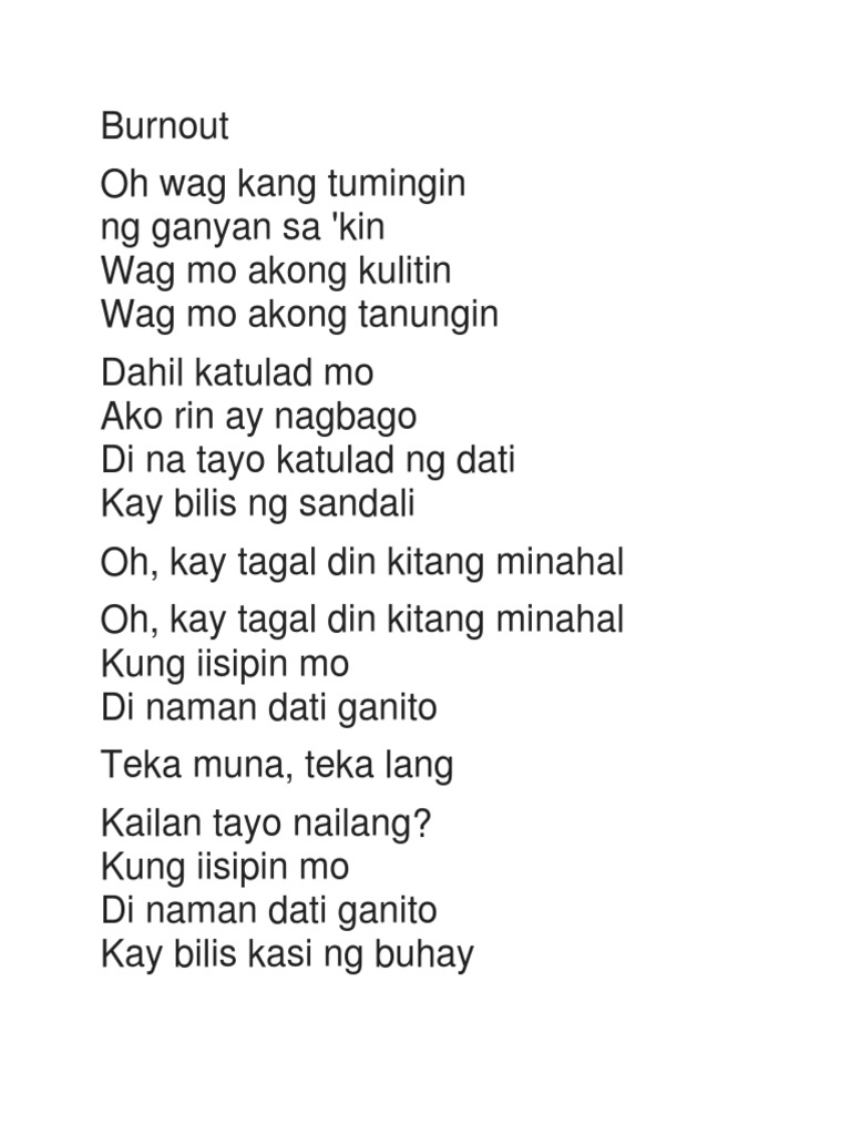 Nais mo ba itong malaman. Kung iisipin mo Di naman dati ganito Teka muna teka lang Kailan tayo nailang Kung iisipin mo Di naman dati ganito Kay bilis kasi ng buhay Pati tayo natangay O kay tagal din kitang minahal O kay tagal din kitang minahal Tinatawag kita Sinusuyo kita Di mo man marinig Di mo man madama O kay tagal din kitang mamahalin O kay tagal din kitang mamahalin Submit Corrections. Ganito rin kung toka mong maglaba pero deadline ang araw na iyon para sa isang project mo sa paaralan.