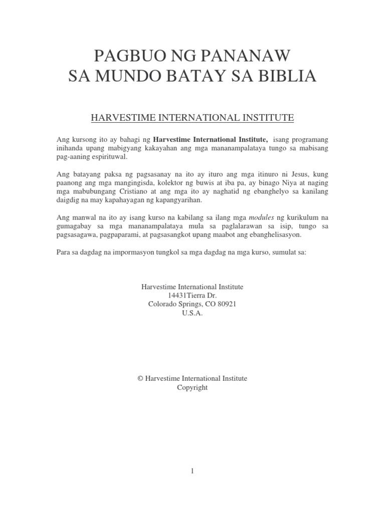 Biblical Worldview Tagalog Pdf